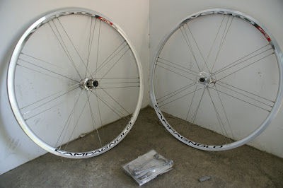 輪組部份,因為我蠻喜歡Campagnolo G3編法的輪組,就選擇該品牌中階產品,銀色Vento輪組,價格不貴外型又好看,所以就用上了這款...你看,前後輪都是G3編法,看起來有高級感~!