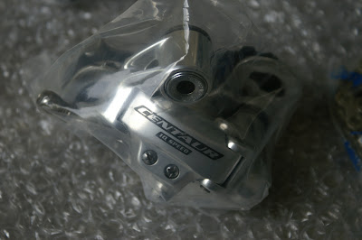 好了,廢話不多說了,既然車架弄到手了,接下來就準備零件,零件不是用最新最高檔的來搭就會好看,這款鋼管車架不是那種一定要搭古董級逸品零件的骨董車架,少了這一層顧慮,可以省下不少錢,零件配色定位在銀色,如果搭配日本Shimano零件整體看來會怪怪的,那也不用考慮了,就選Campagnolo 10速第三級Centaur,忘了那一年份的,就是都銀色那款,不過有牙頭碗跟大尺盤與BB可是選擇第一級Record,本來飛輪也要選Record,但剛好預算用完了,就先用centaur!