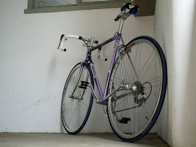 這台車是2007年3月組裝完成,所以算是已經慢了1年多的舊文了,記得當時到馬路上試騎,反應算輕便,後續加速反應快,可能跟輪組有關,騎在不平的路面上感覺不算癲坡而且帶點Q的路感,應該是鋼管車架發揮功效,整車配色清爽,由藍漸層變成薰衣草色,應該是適合女生騎乘,後續交給朋友後,已建議坐墊跟坐桿可以換掉,外胎顏色也可以改成黑色,會讓車架表現更突出!